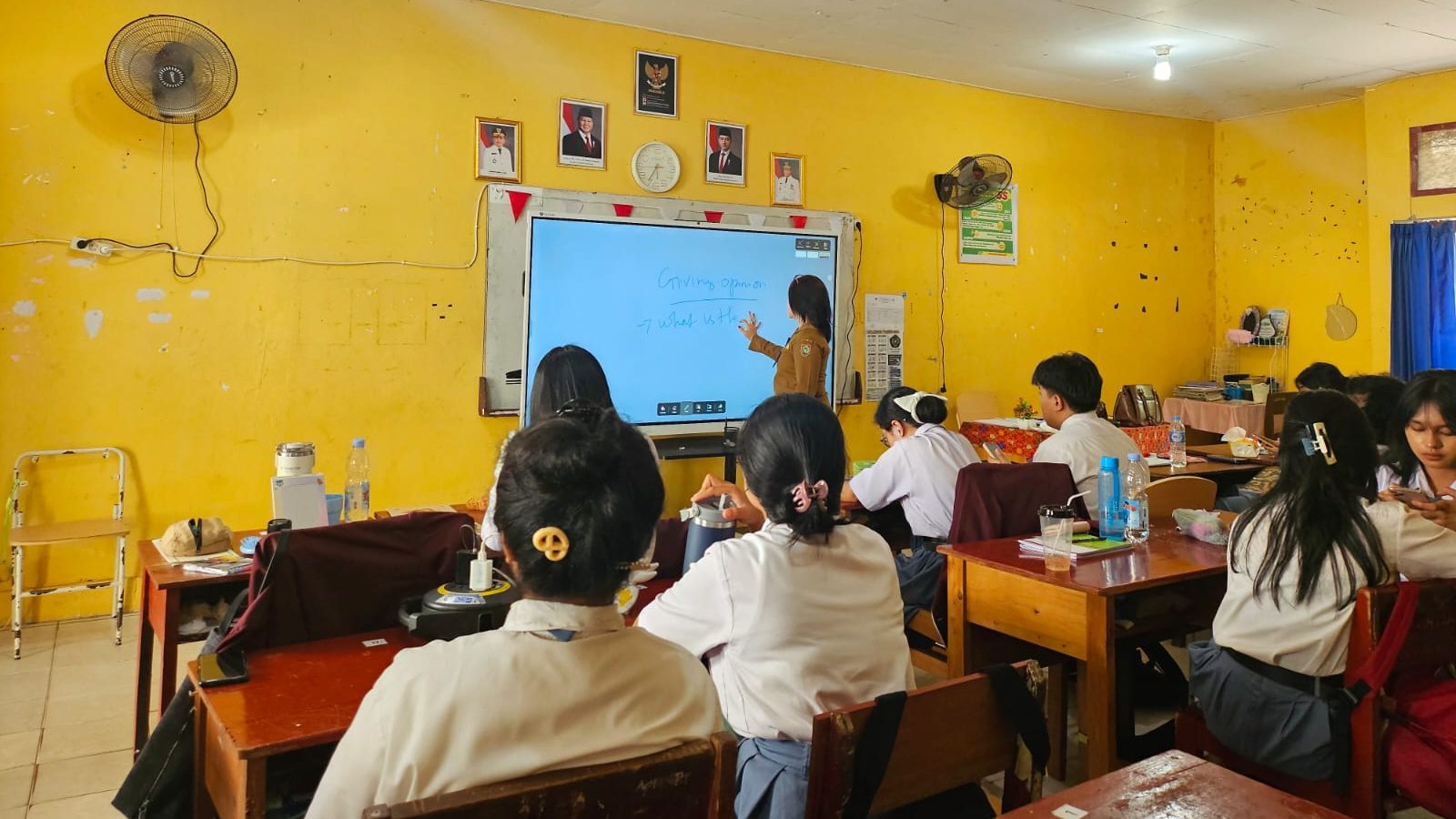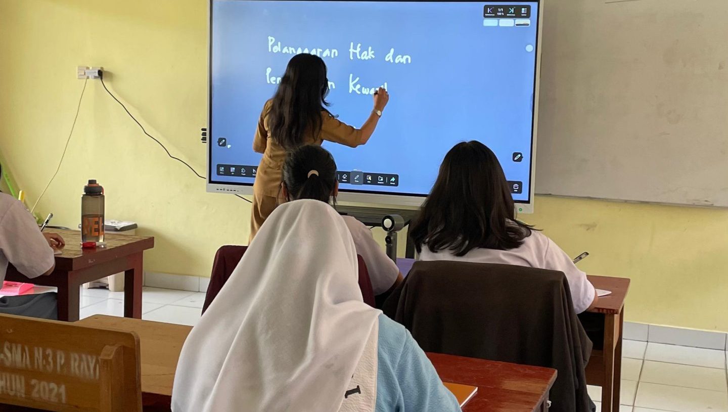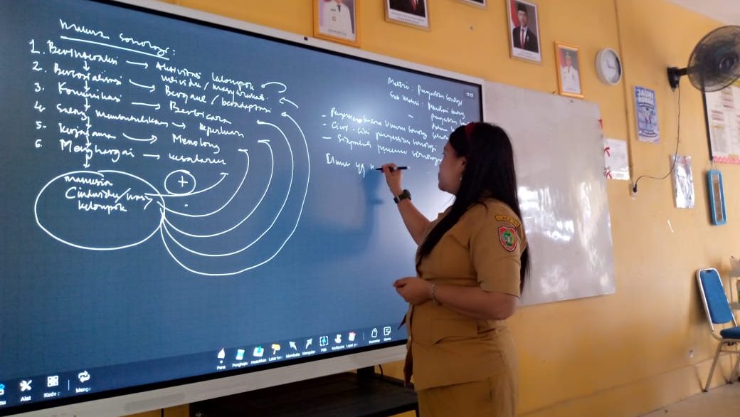 “Kalau sebelumnya kami hanya melihat materi di papan tulis biasa, sekarang bisa langsung berinteraksi. Rasanya belajar jadi lebih menarik,” ungkap Anthoniyo, salah satu siswa di kelas XII.