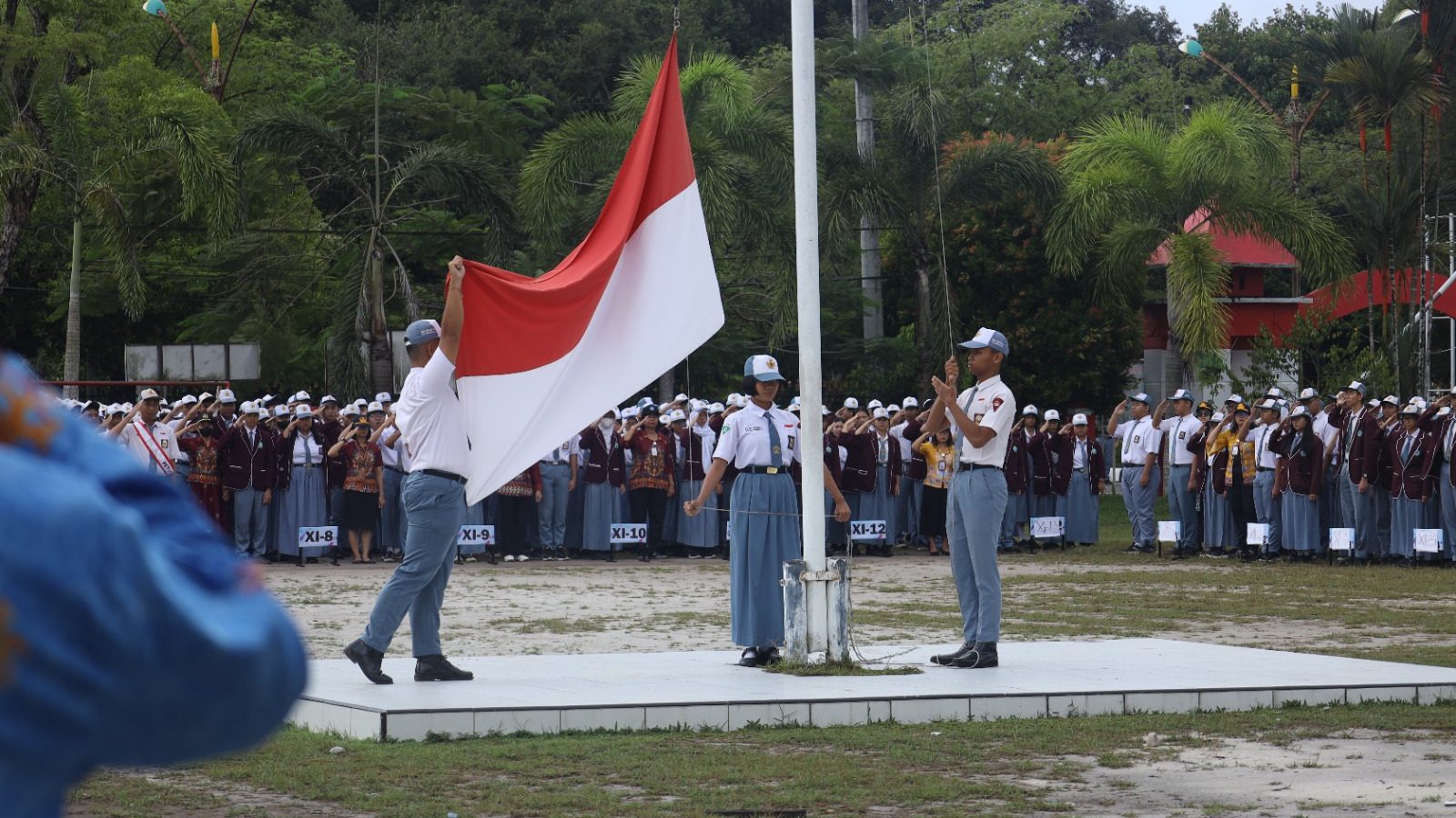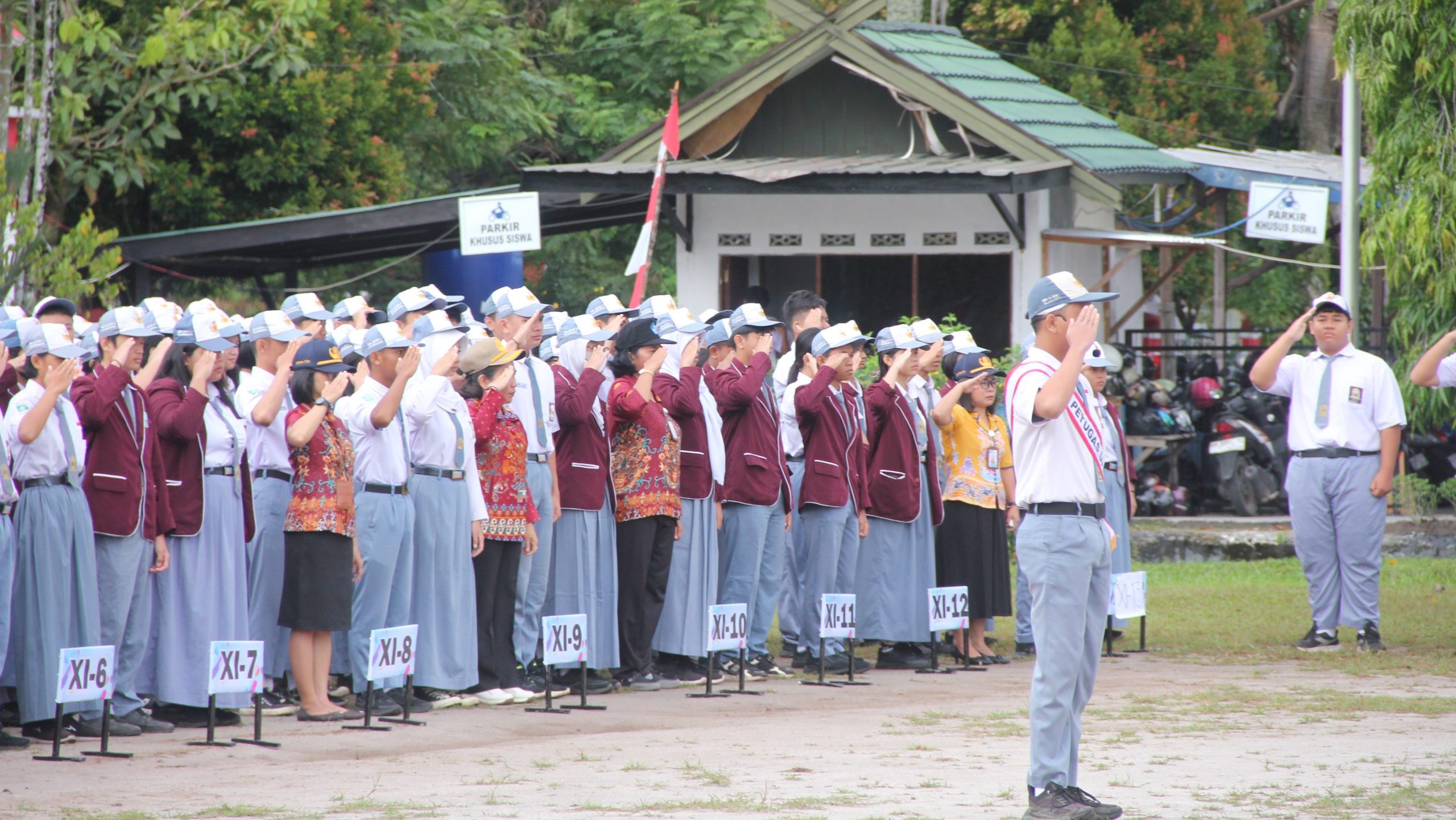 Palangka Raya, 1 September 2025 – Suasana mendung menyelimuti halaman SMAN 3 Palangka Raya. Meski langit tak secerah biasanya, semangat para peserta upacara tetap berkobar. Lapangan sekolah dipadati barisan rapi guru, tenaga kependidikan, serta ratusan siswa yang berdiri tegak mengikuti jalannya upacara bendera rutin.